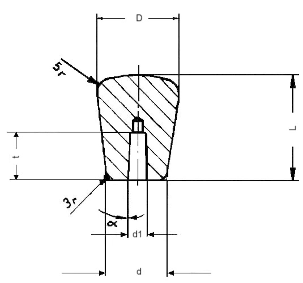 mit konischem Sackloch, zum Aufschlagen